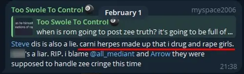 Caption: "forbidden carni link" and the "nuke" are the leaked nude photos, and "stryder" is their accomplice who leaked them.